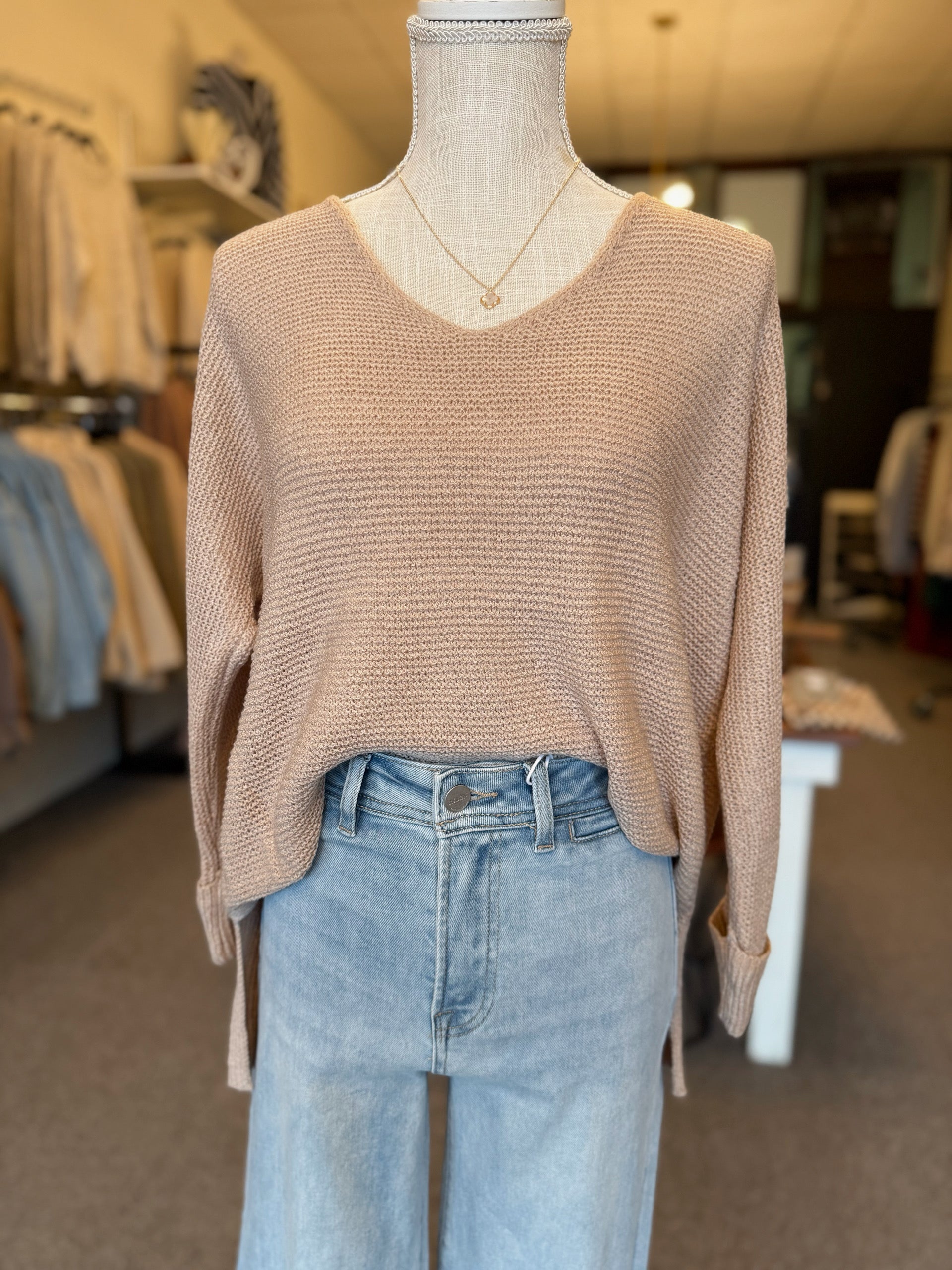 Elevate your style with our Be Cool Relaxed Sweater. Featuring a flattering V-neck and dolman sleeves, this sweater offers a relaxed and comfortable fit. The rolled cuffs, side slit, and rib and high-low hems add a touch of uniqueness to this versatile piece, making it a must-have for any wardrobe. Enjoy its below-the-hip length for a flattering and trendy look.