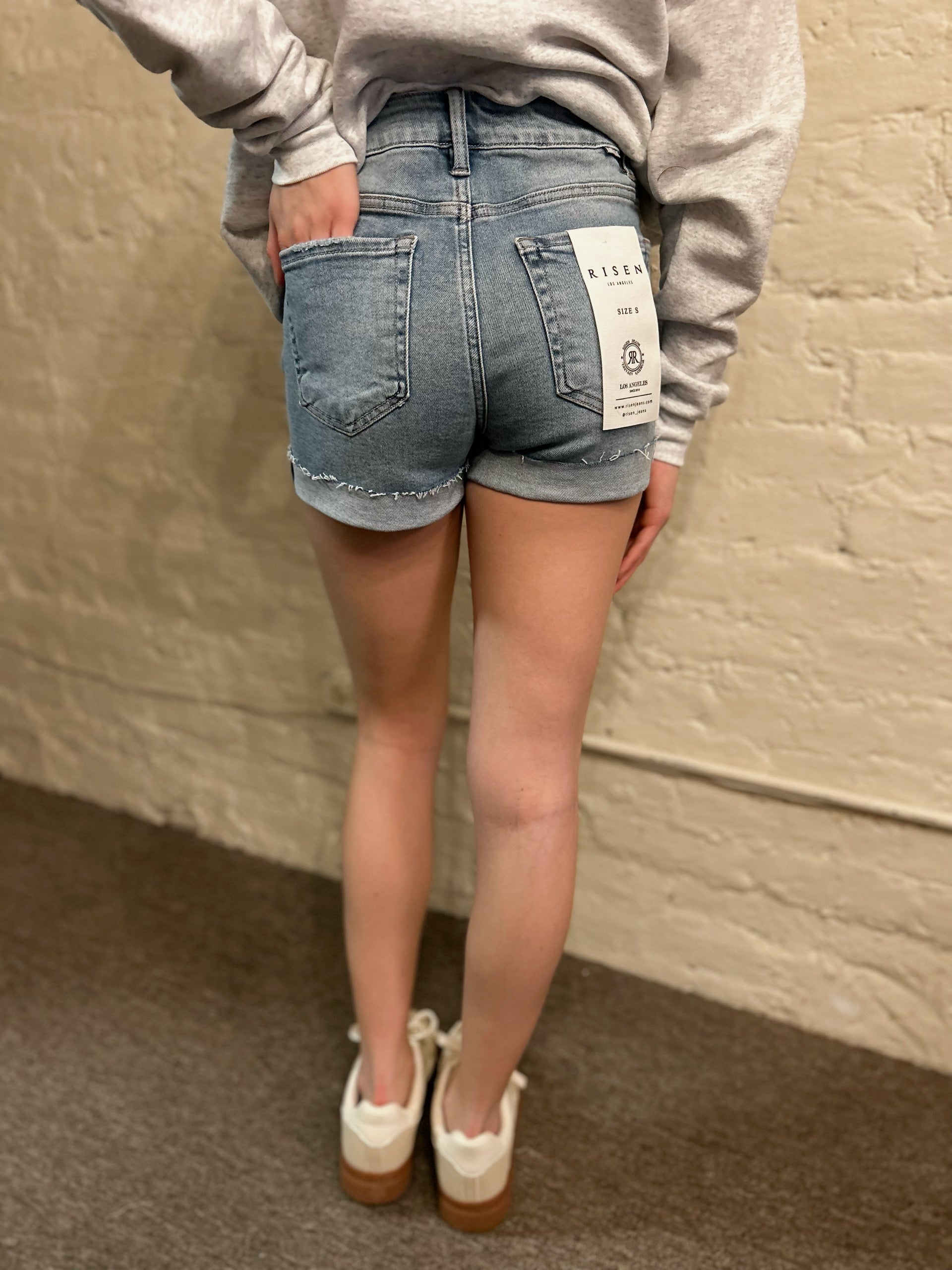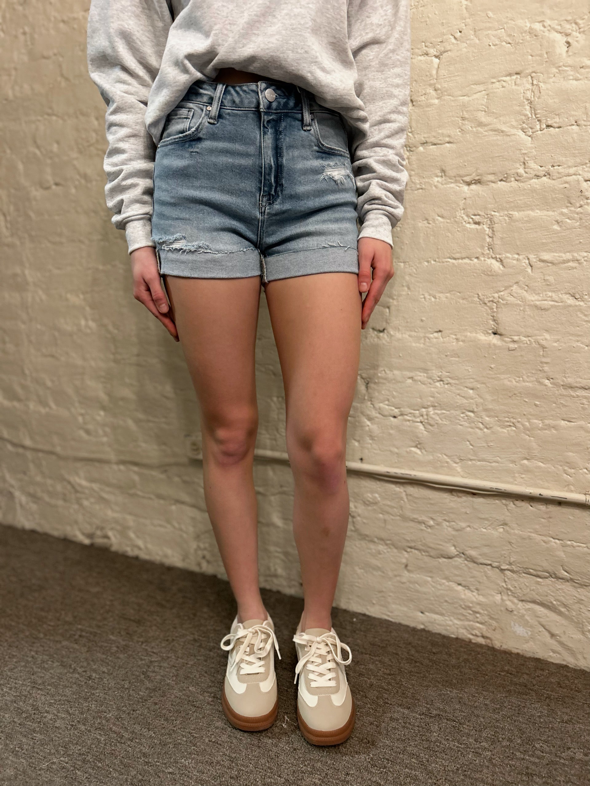 Elevate your summer wardrobe with our High Rise Cuffed Shorts! These light wash shorts are both stylish and comfortable thanks to their stretchy fabric. With a rise of 10 1/2" and a perfect 3 1/2" inseam, they will flatter your silhouette and keep you feeling confident all day long.