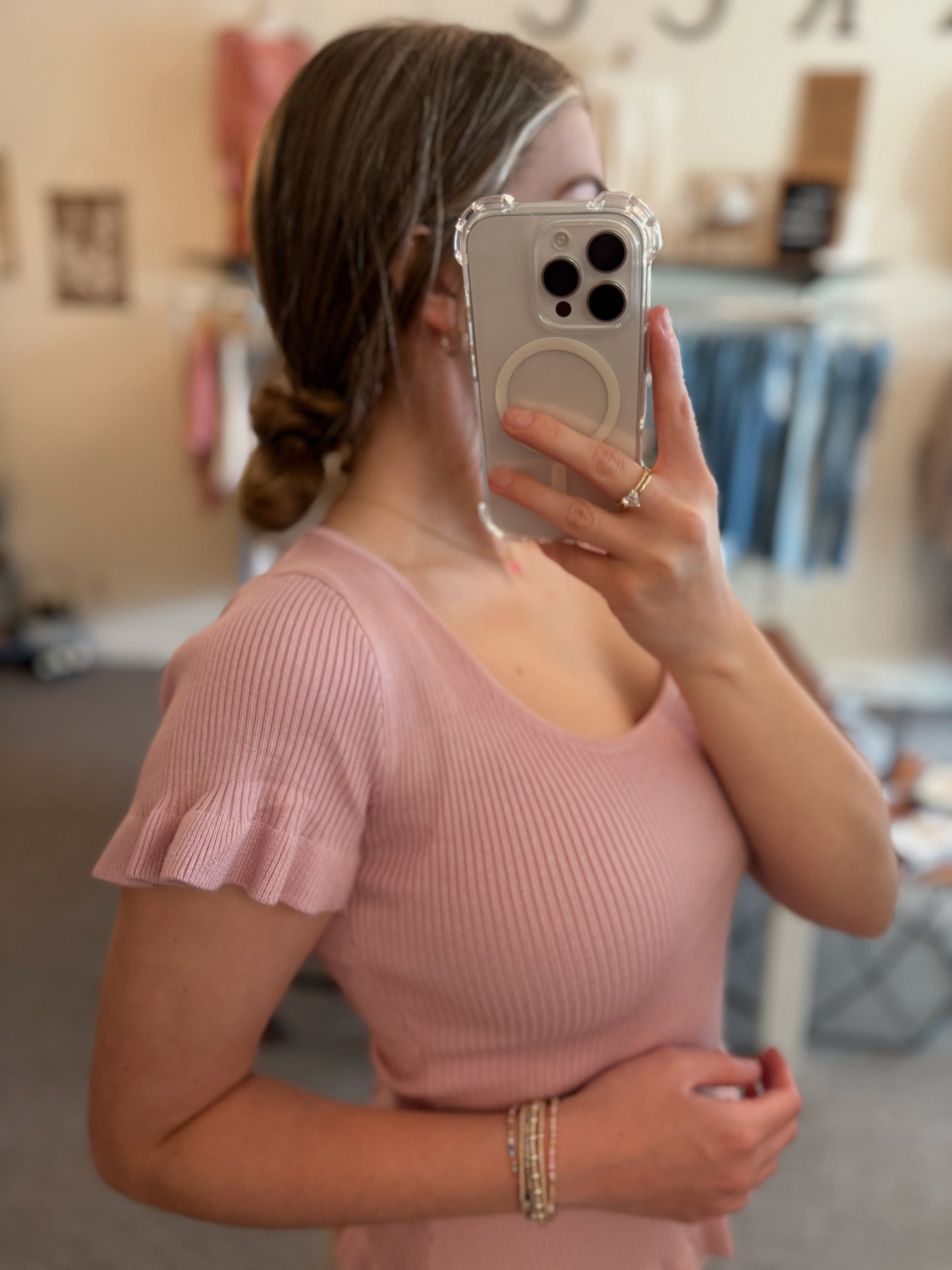 Elevate your wardrobe with the Jordyn Ruffled Top! This ribbed knit top features a flattering scoop neckline and short sleeves for a timeless and versatile look. The charming lettuce hem adds a touch of femininity, while the solid color makes it easy to pair with any outfit. Upgrade your style today!
