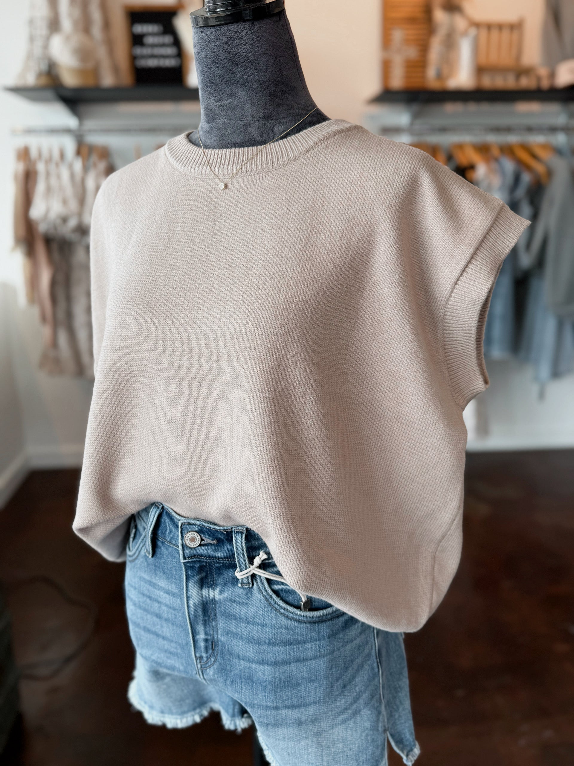 Embrace effortless style with the Oversized Cap Sleeve Sweater in Light Mocha. Crafted from soft viscose, its relaxed fit and cap sleeves make it ideal for layering or wearing on its own. This versatile sweater adds a cozy, chic touch to any outfit, perfect for transitioning through seasons with comfort and ease.