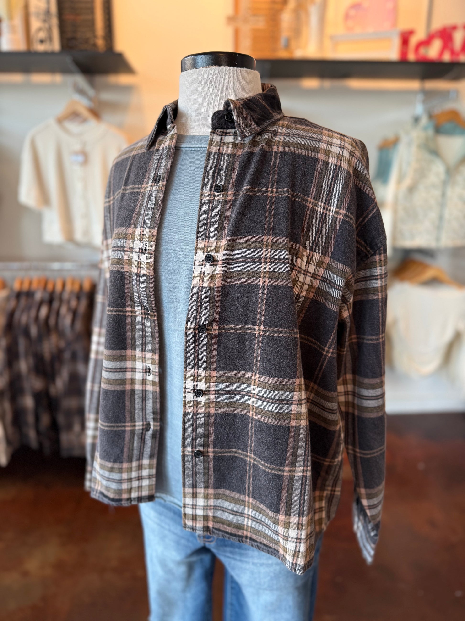 Embrace timeless style with this versatile plaid button-down shirt. Crafted from 100% cotton, it features a relaxed boxy fit and drop shoulders for effortless comfort and movement. The classic collared neckline and long sleeves offer polished appeal, while the woven plaid pattern adds character to any outfit. Unlined construction keeps things lightweight and breathable, making it perfect for layering or wearing solo across seasons.