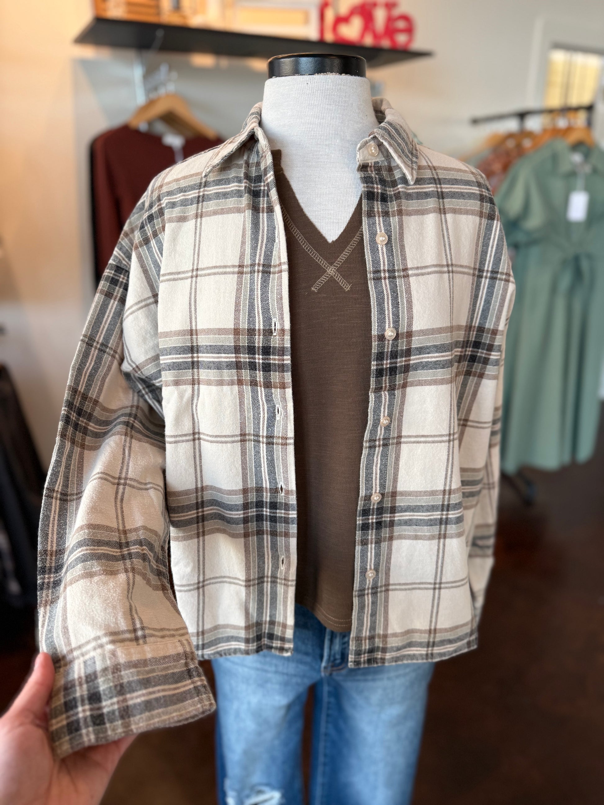 Plaid Button Down Boxy Flannel (khaki multi)