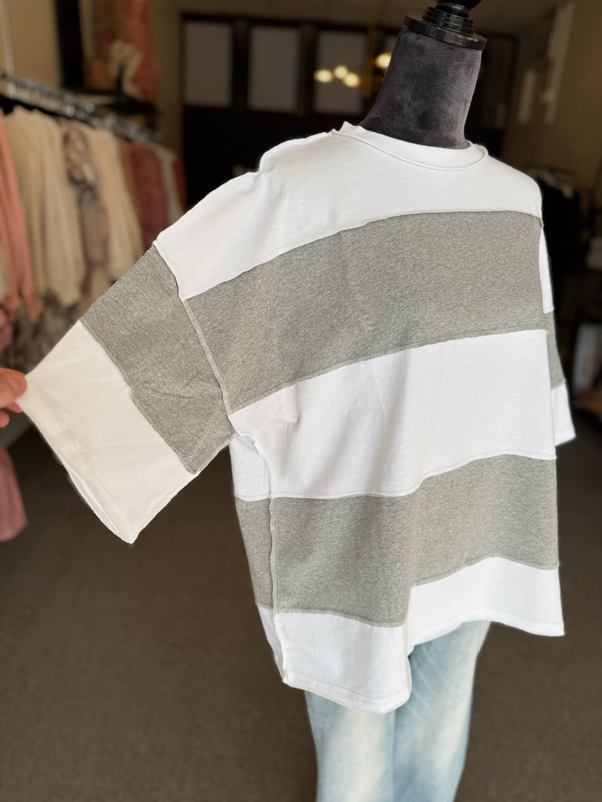 Experience effortless style with our Popular Color Block Tee! This relaxed-fit T-shirt showcases bold stripes and exposed seams for a casual vibe. Its oversized silhouette and breezy fabric make it perfect for pairing with denim shorts or leggings. Elevate your wardrobe with this must-have tee today!