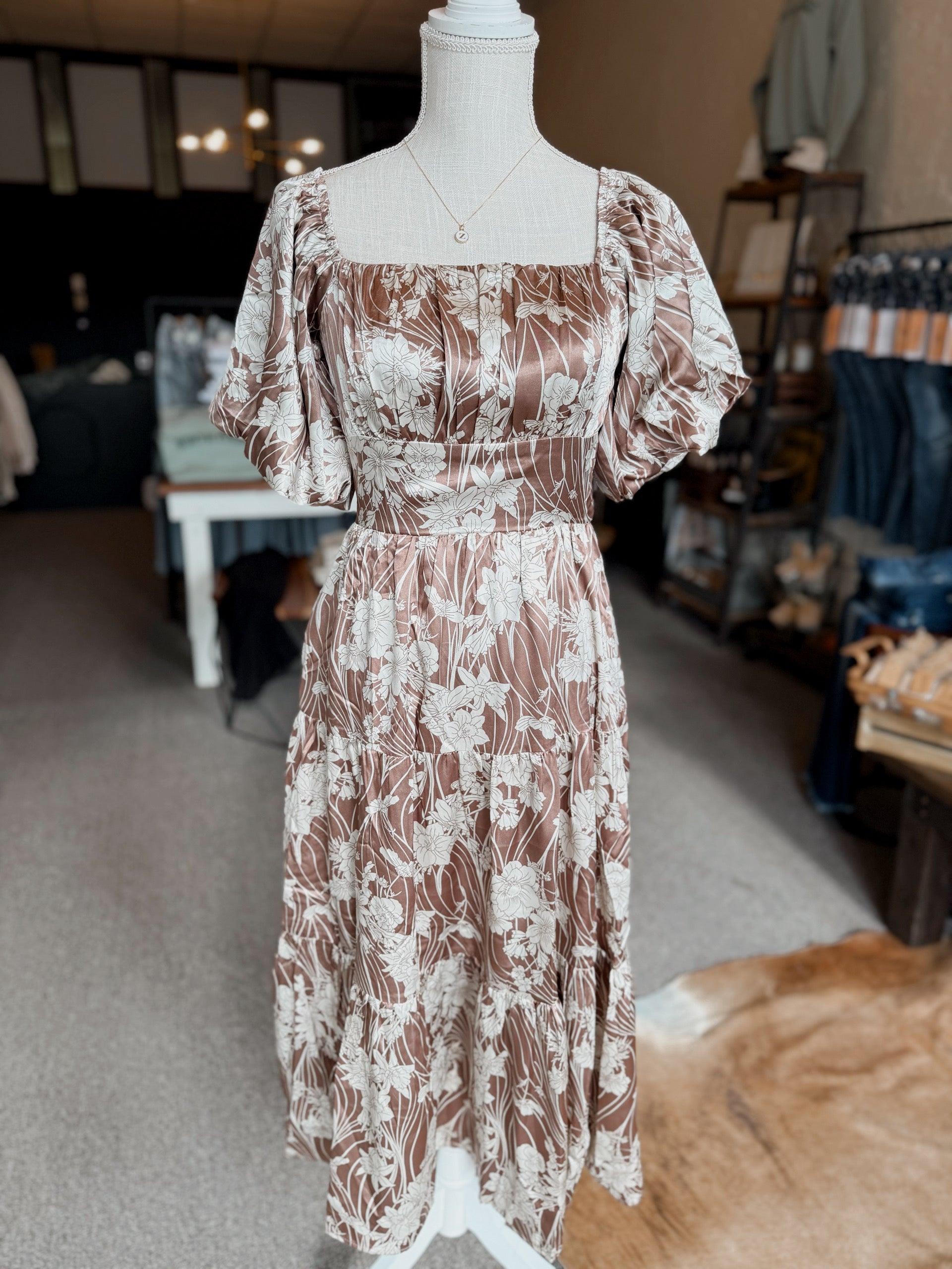 Indulge in the beauty of our Stop & Stare Floral Midi Dress! Made with luxurious silk satin and designed with a square neck and puff sleeves, this dress is both elegant and comfortable. The smocking on the back adds extra stretch for the perfect fit, while hidden pockets provide convenience. Fully lined for a polished look.