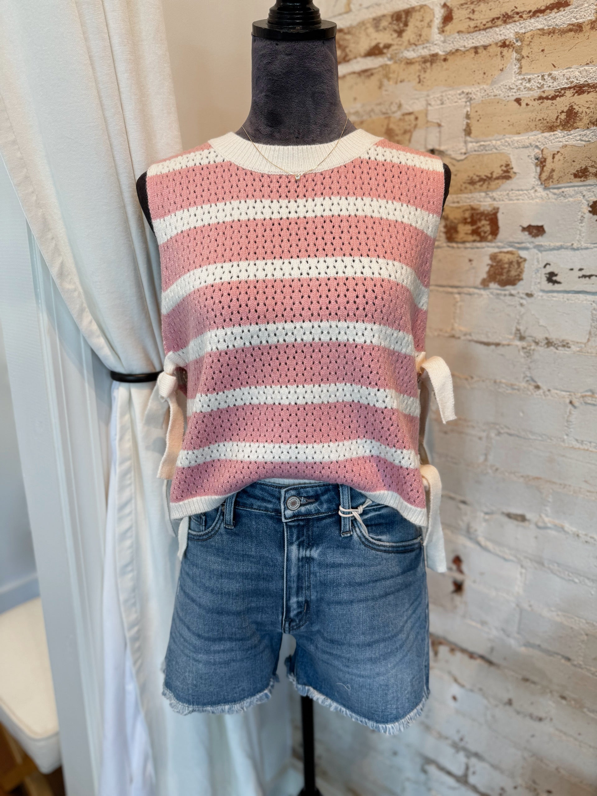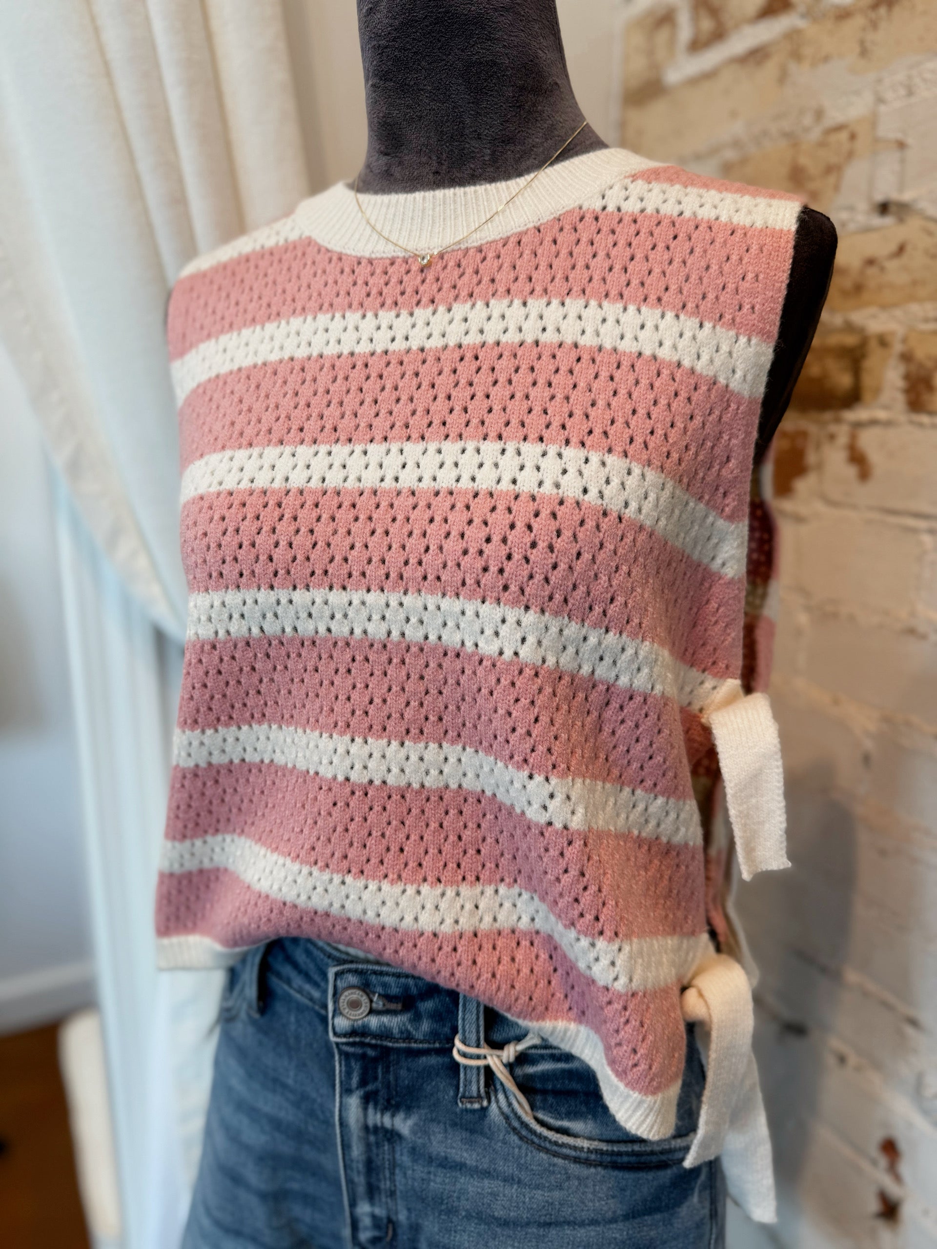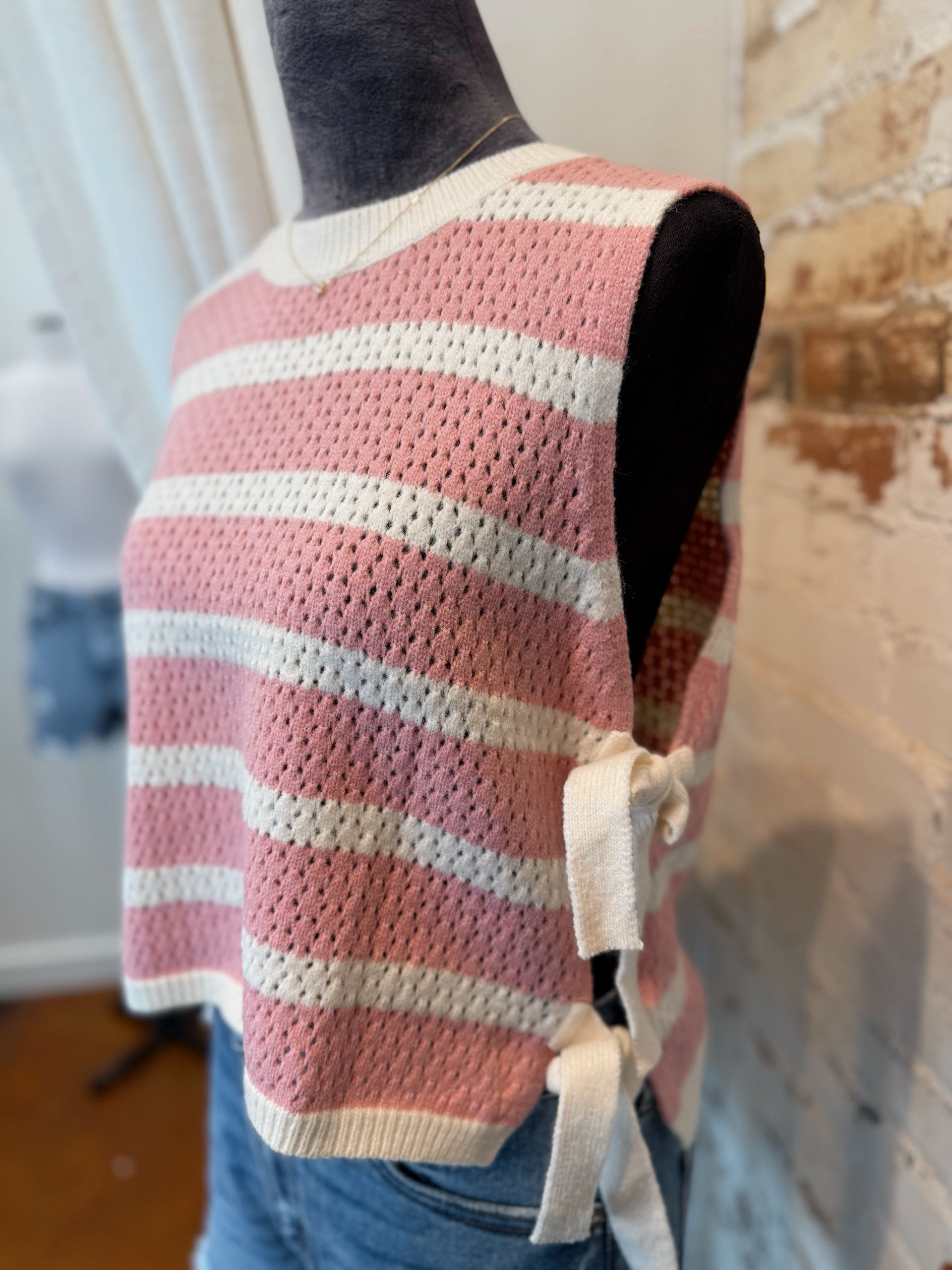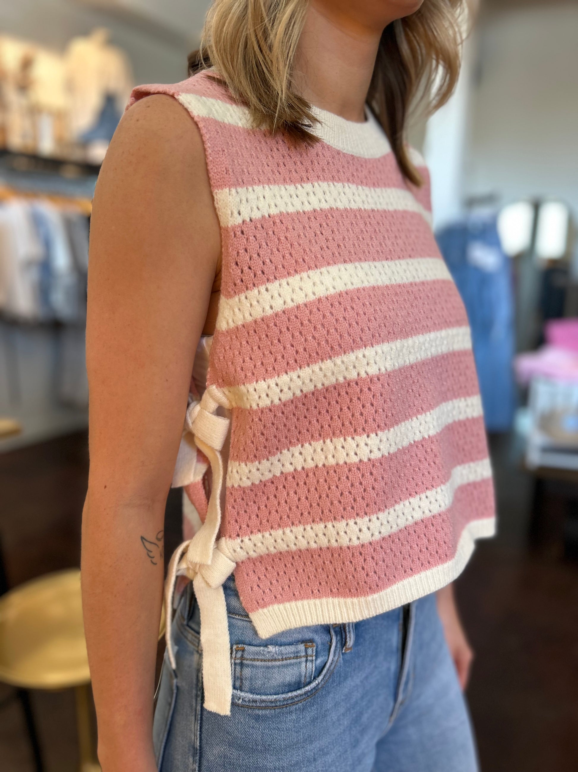 This light pink Stripe Side Tie Top features a textured stripe design and adjustable side ties for a comfortable, customizable fit. Its soft fabric and flattering cut make it an easy choice for everyday wear, providing both style and ease throughout your day.