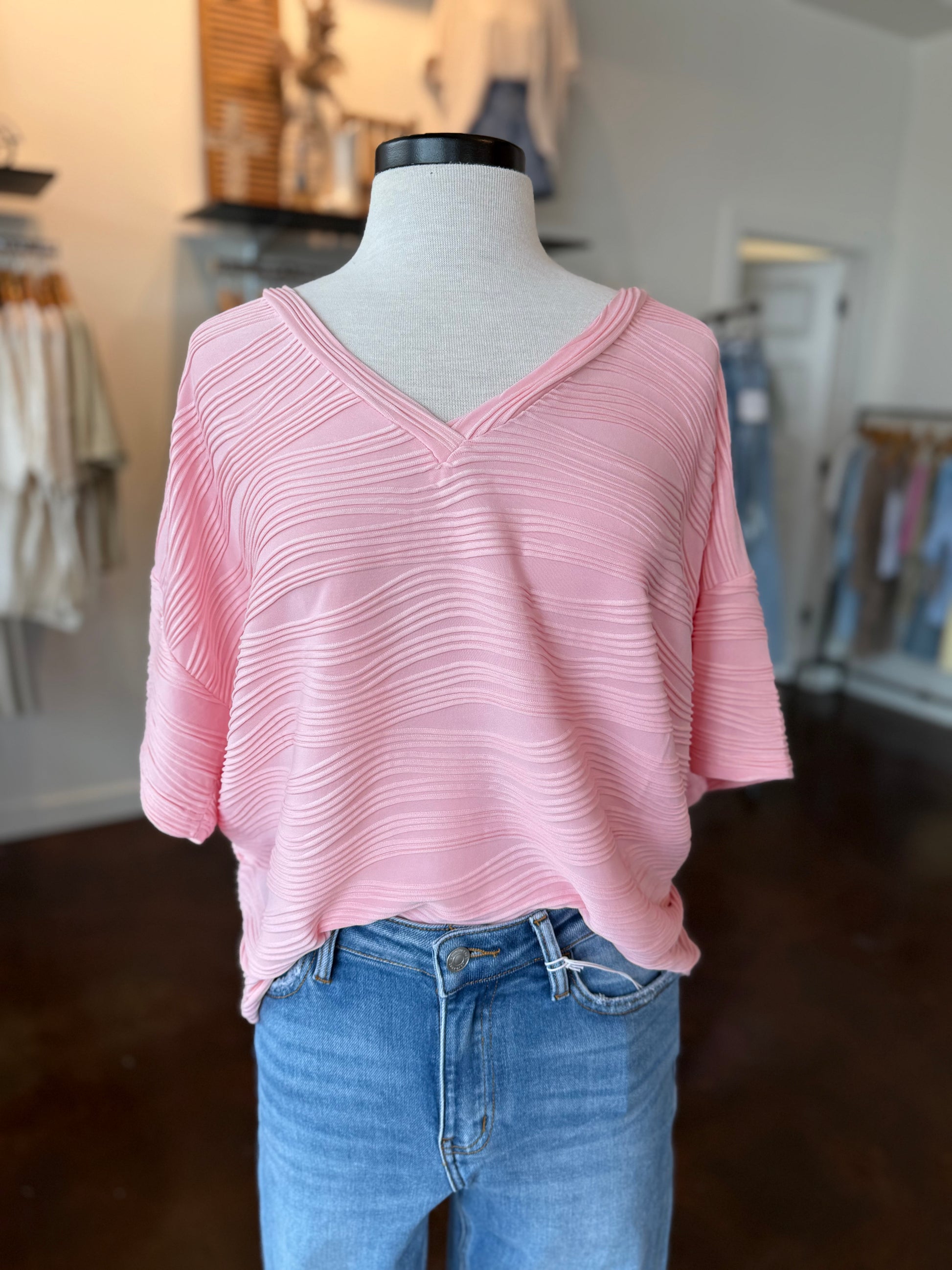 This Texture V-Neck Loose Fit Top offers a comfortable, relaxed silhouette perfect for everyday wear. Its soft fabric and loose fit provide ease of movement, while the side slit adds a subtle touch of style and breathability. Designed to keep you feeling confident and comfortable throughout your day.